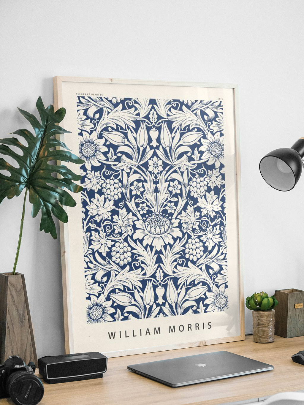 윌리엄 모리스는 19세기 영국 미술공예운동의 선구자로, 자연주의적 모티브와 복잡하고 반복적인 패턴, 수공예적 감성, 풍부한 색채, 장식적 요소 강조를 특징으로 하는 독창적인 화풍을 확립했습니다. 그는 산업혁명의 기계화에 반대하며 수공예의 가치를 옹호했고, 벽지, 직물, 가구 등 다양한 분야에서 자연에서 영감을 받은 아름다운 디자인을 선보였습니다.